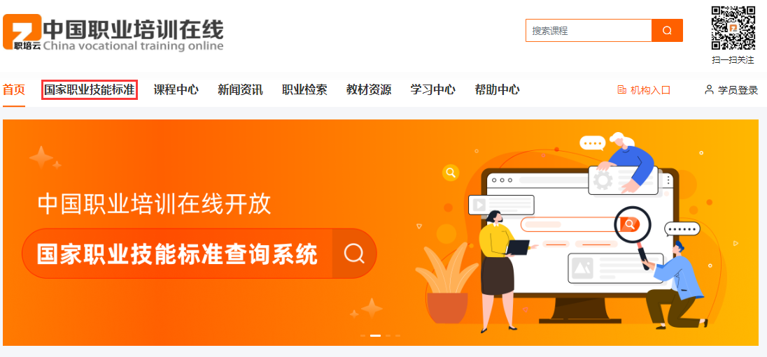 一、PC端:“中国职业培训在线”(网址:http://px.class.com.cn)主页点击二级菜单页面或者专区入口图片,进入“国家职业技能标准查询系统”。