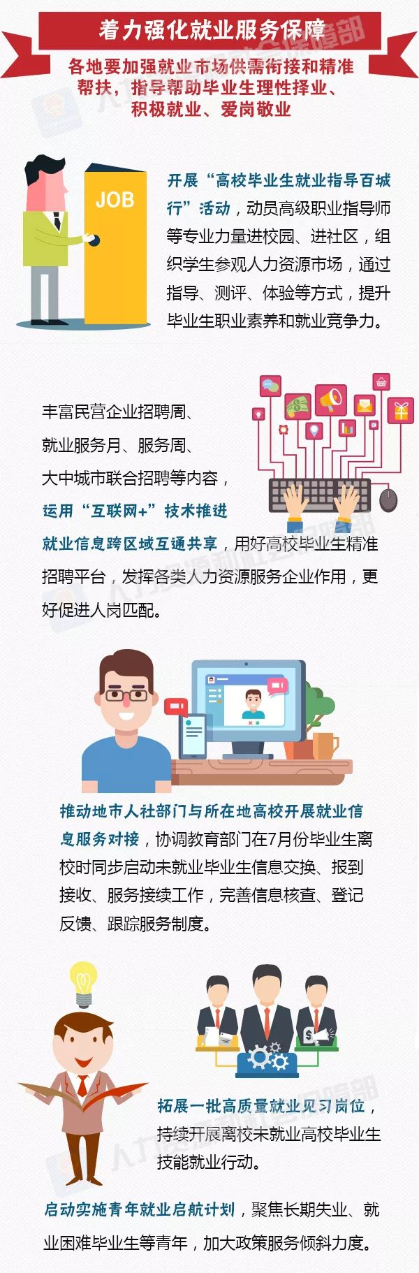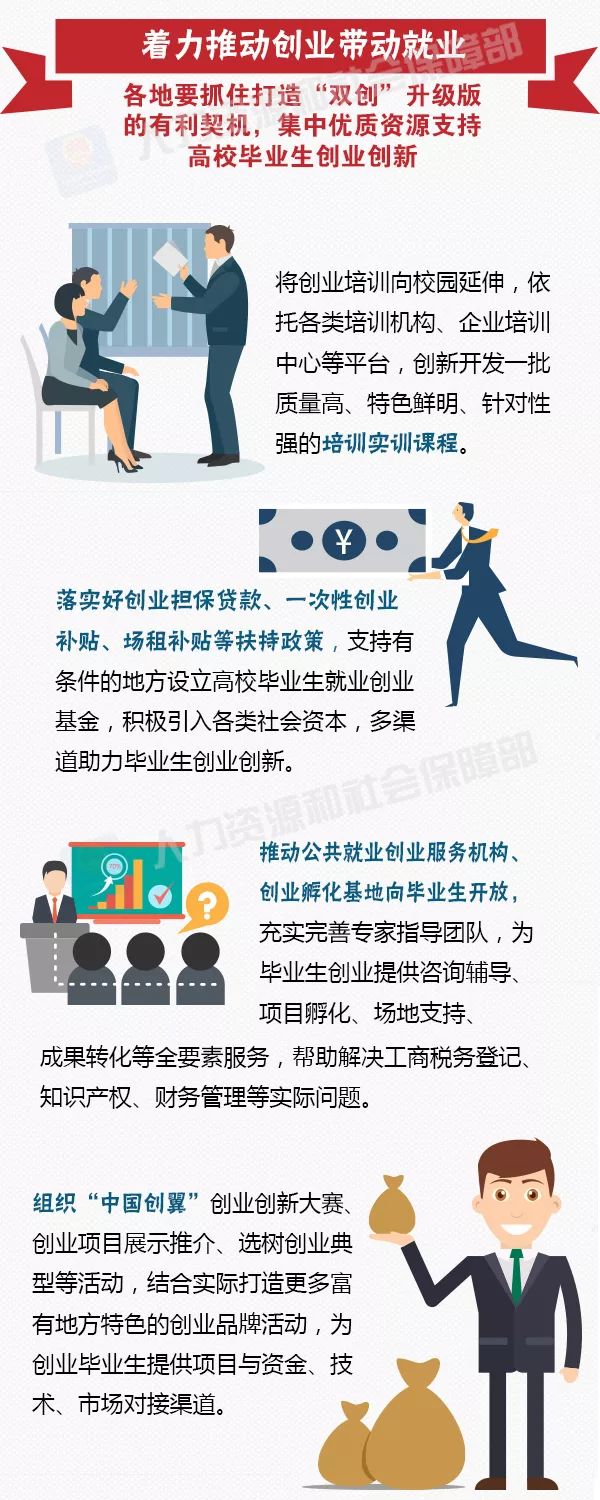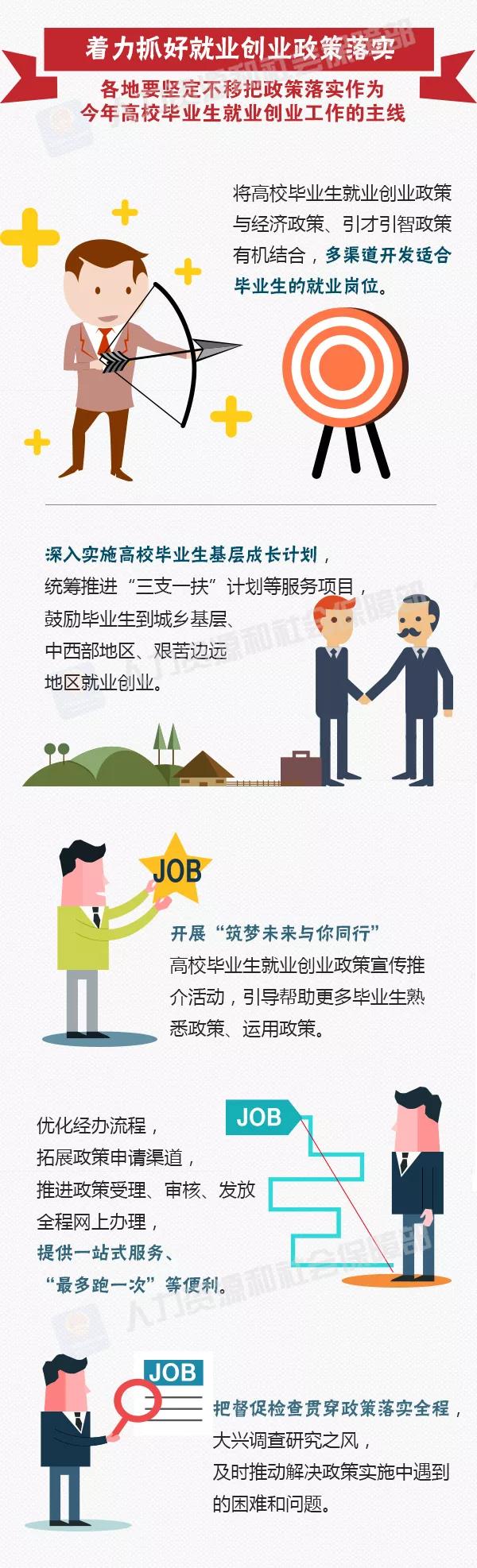 来源: 中国就业创业 人社部近期印发《关于做好2018年全国高校毕业生就业创业工作的通知》,要求坚持把高校毕业生就业摆在就业工作首位,确保高校毕业生就业水平总体稳定、就业局势基本平稳。具体要求有哪些?一图看懂——